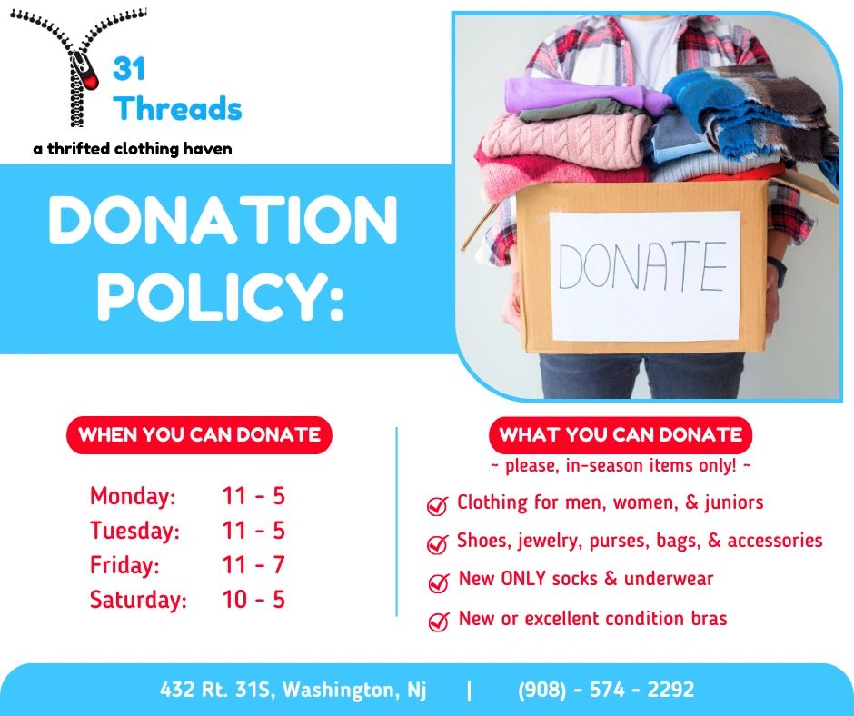 3,000 square feet of great clothing, shoes & accessories at thrift shop prices for men, women, and juniors.